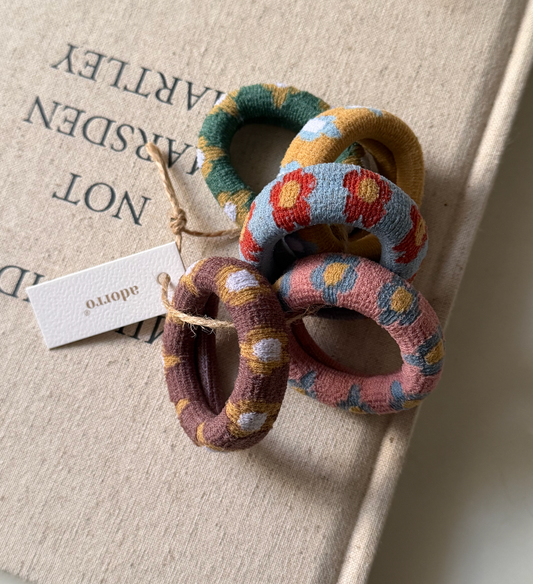 Multicolor Flower Thick Seamless Hair Ties (Set of 5)