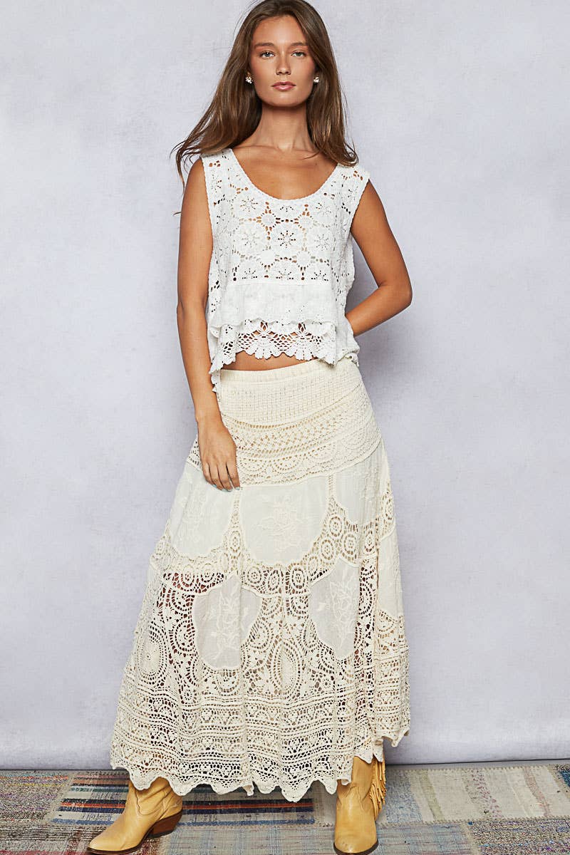 Designed in regular fit crochet skirt with various crochet patterns.
