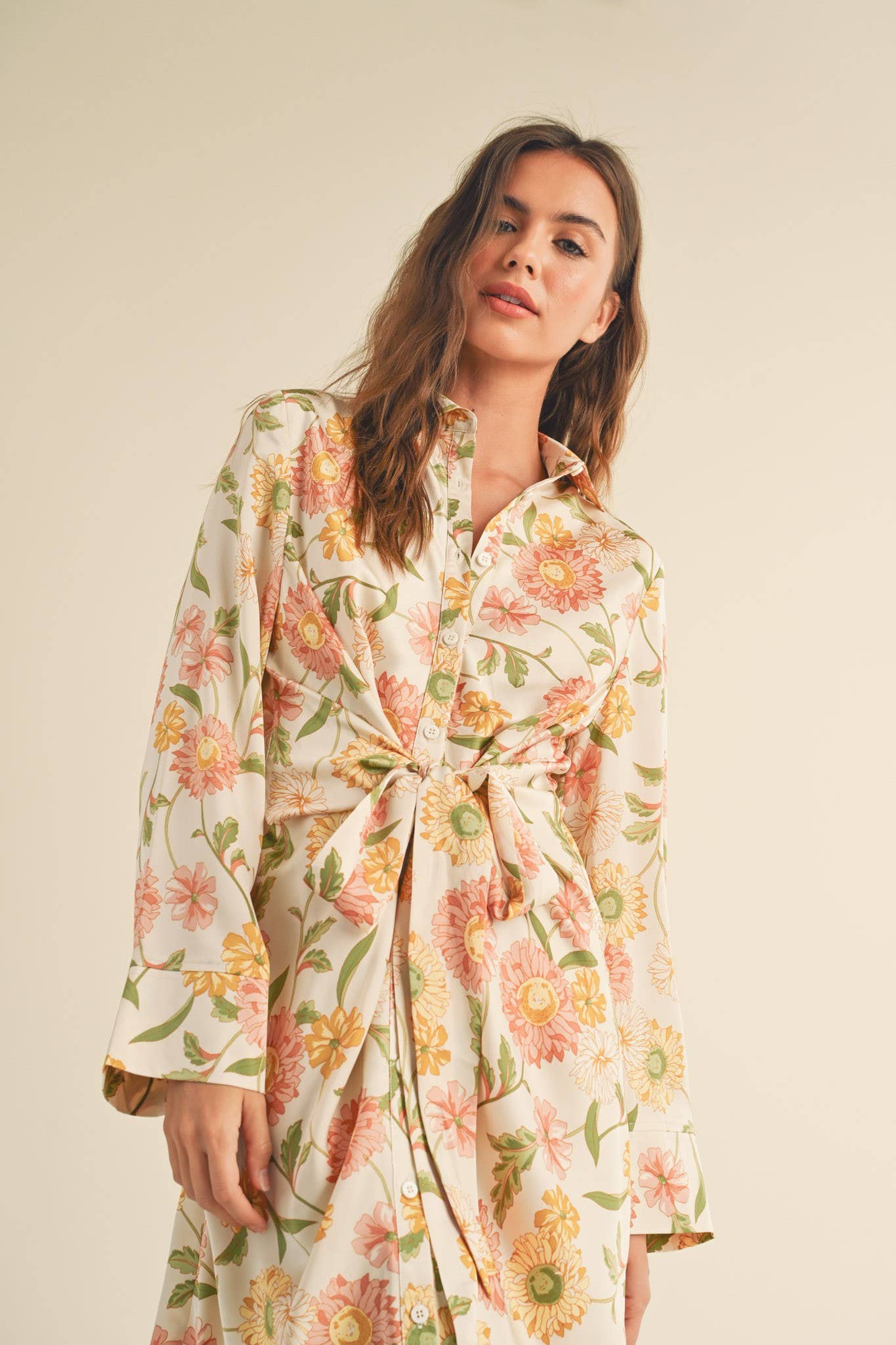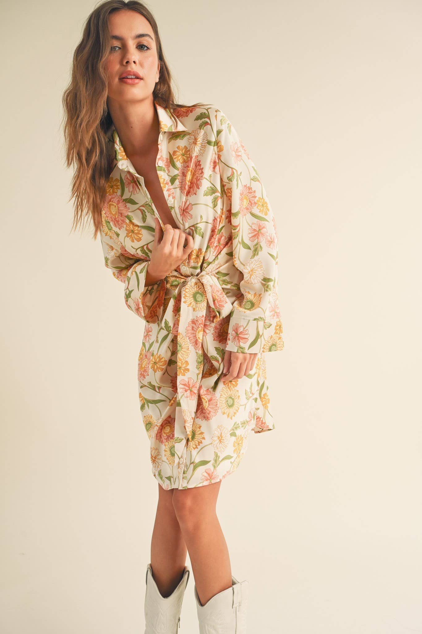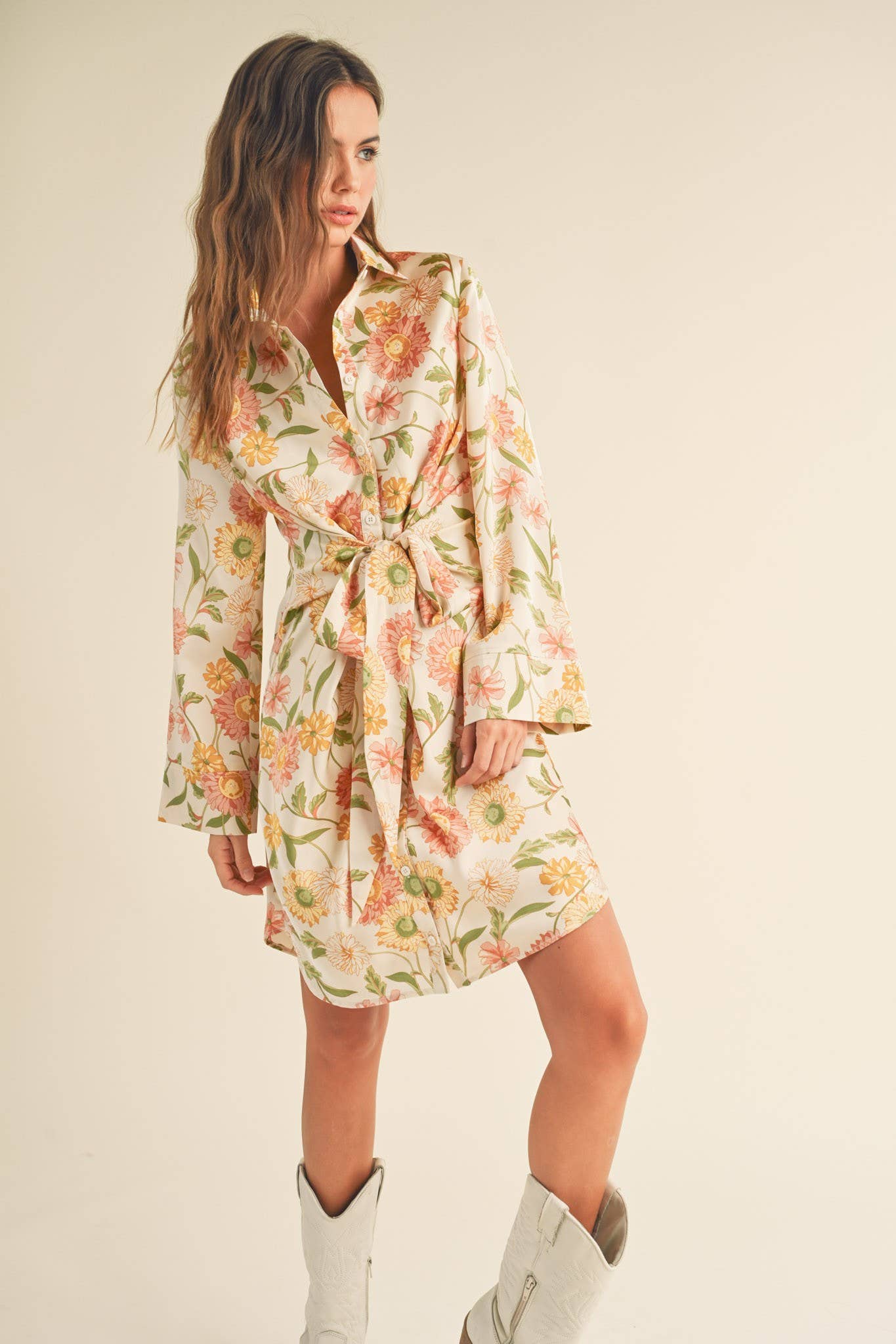 + Floral tie front mini dress