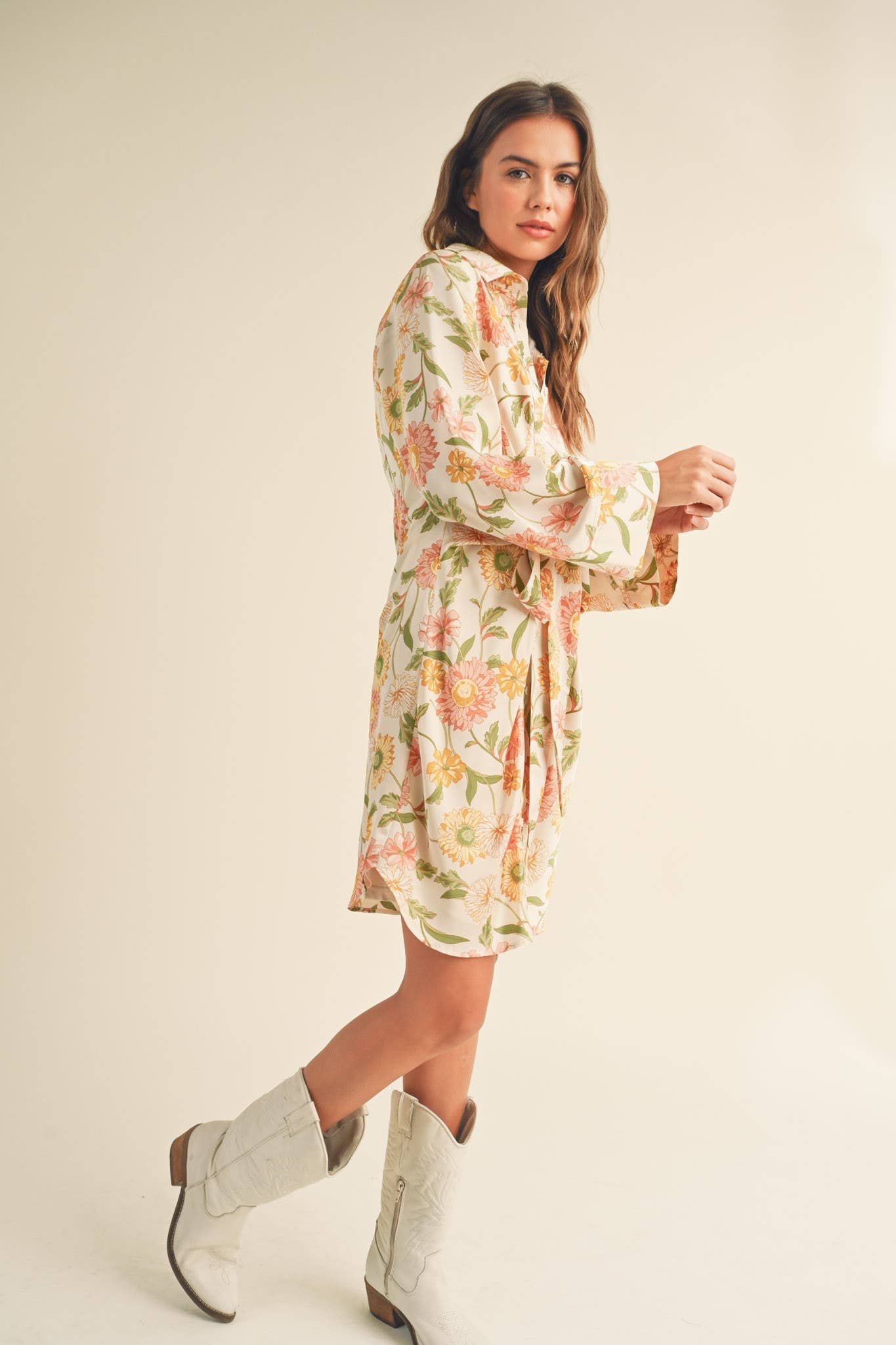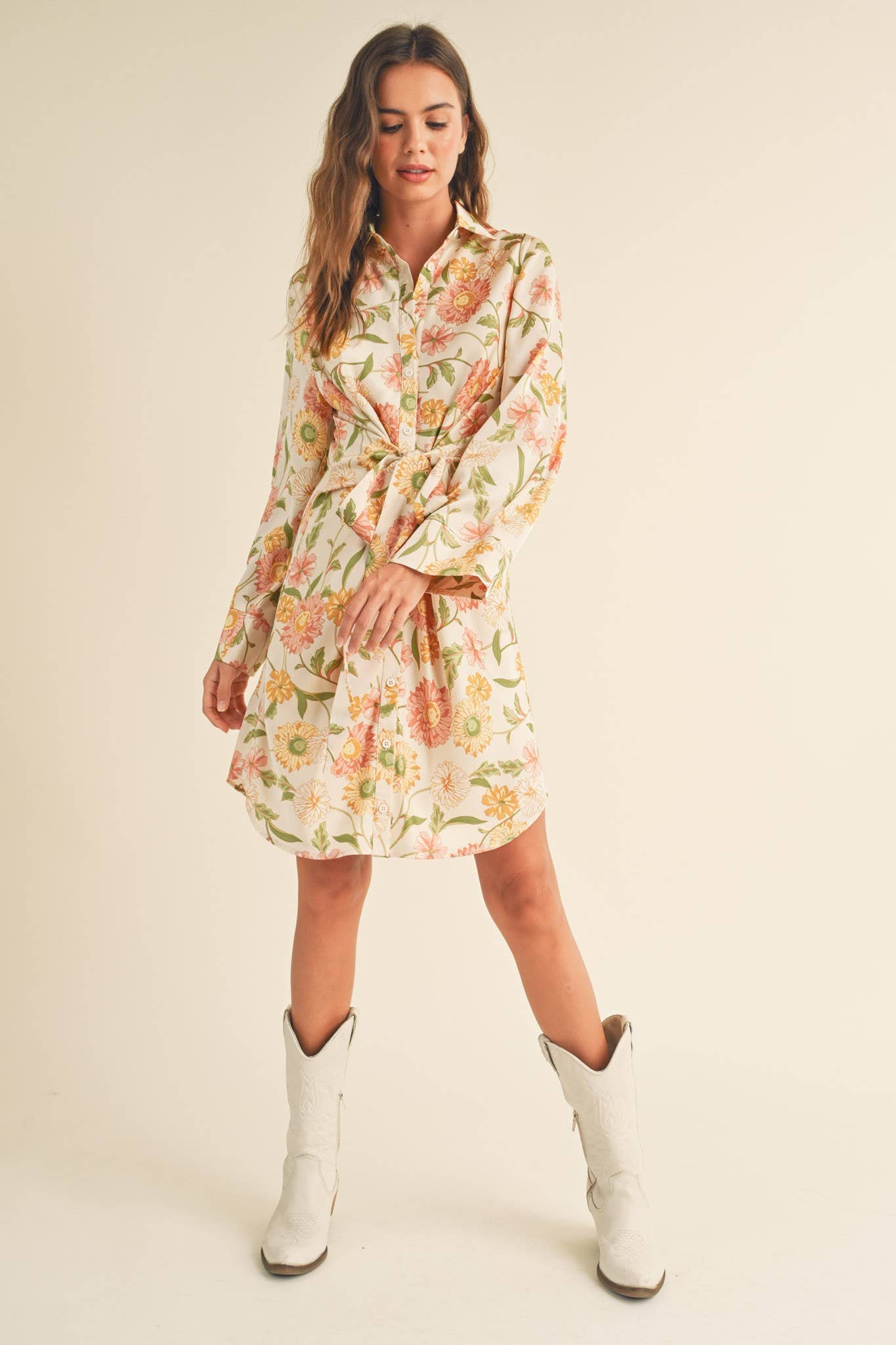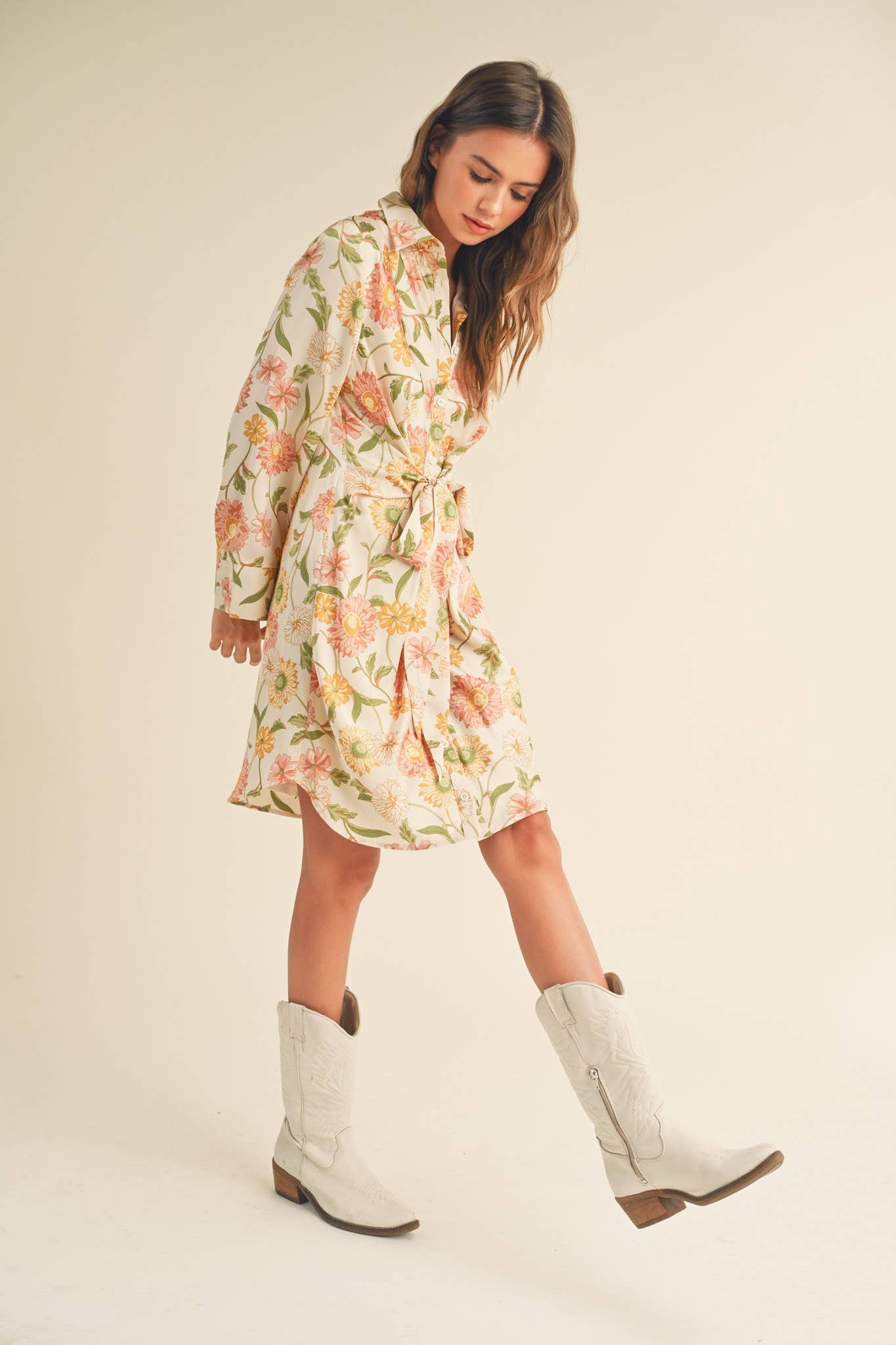 + Floral tie front mini dress