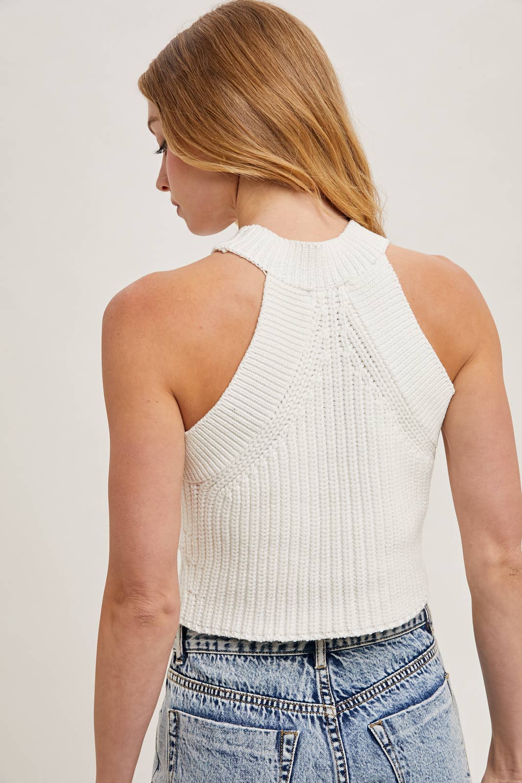 A Flower Knit Halter Tank Sweater is a stylish sleeveless knit top featuring a halter neckline and floral knit detailing. This piece combines the cozy feel of a sweater with a breathable, open-knit design, making it perfect for layering or wearing on its own during hot seasons. The halter neckline gives it a chic, flattering look, while the floral knit pattern adds a feminine and delicate touch. It pairs well with high-waisted jeans, skirts, or shorts for a trendy yet effortless outfit. Ideal for casual outings, vacations, or summer evenings, this top blends comfort and style seamlessly.