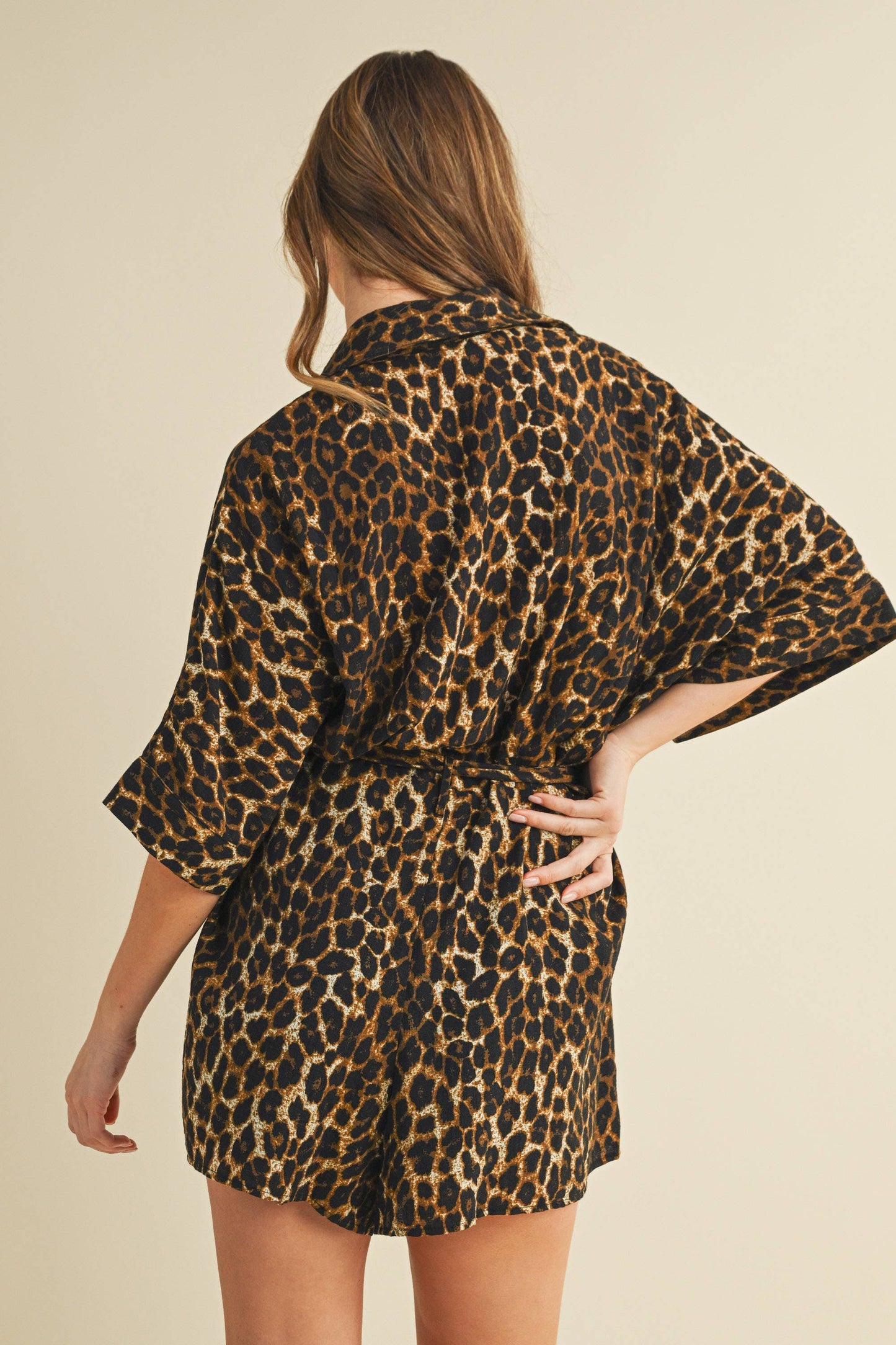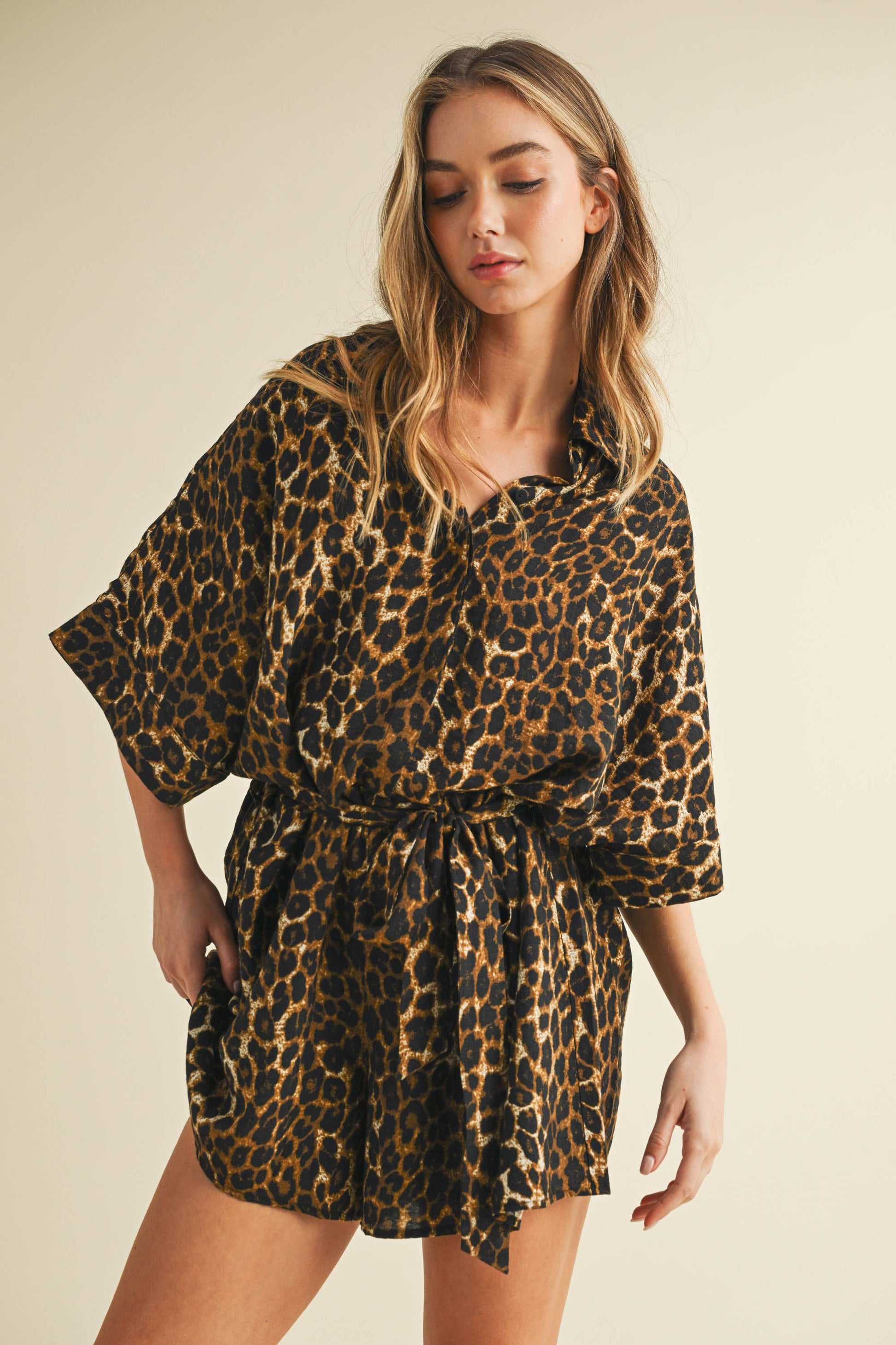 LEOPARD OVERSIZED SHIRT COLLAR ROMPER