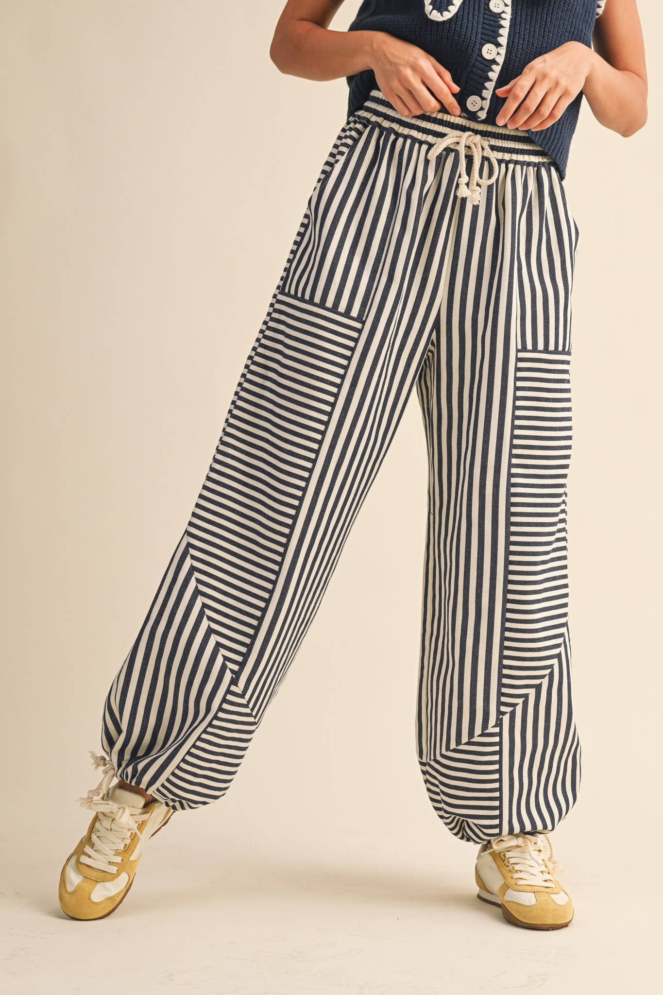 + Drawstring waist with natural cotton cord