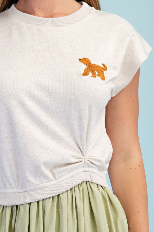 Knit embroidered dog bubble hem dress