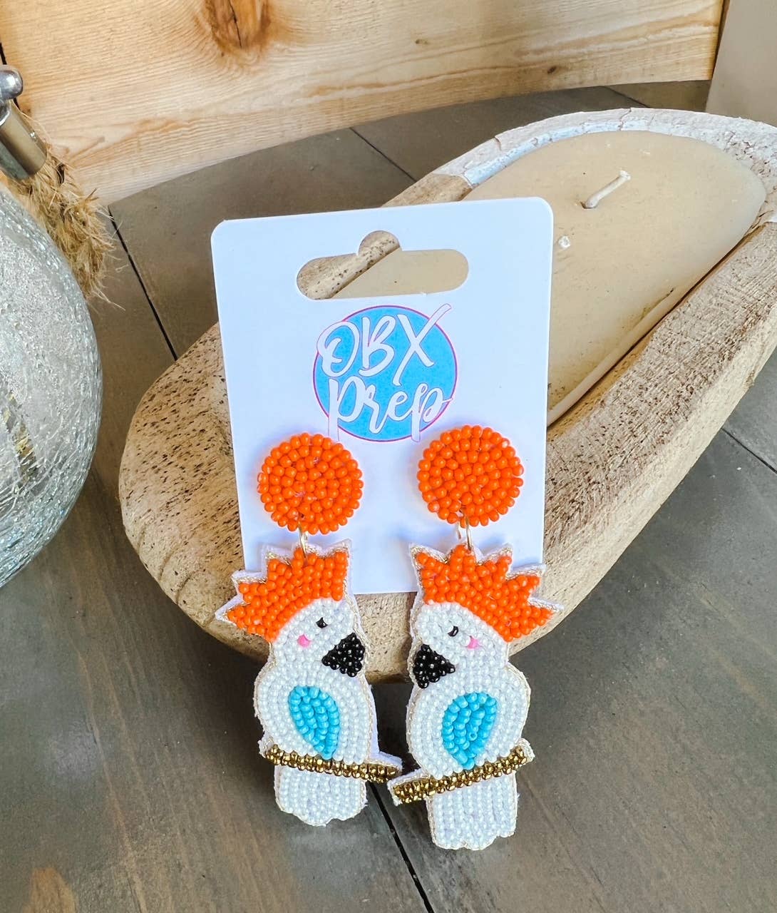 Tropical Bird Cockatoo Seed Beaded Dangle Earrings
